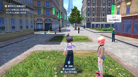 キャラクリ後にイベントを見ると、主人公が電車でミアレ駅に到着しました。ミアレ駅の改札から外にでると、メインミッション01「旅行カバンを取り返せ」が始まりました。