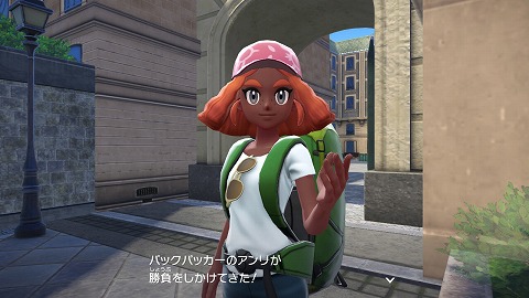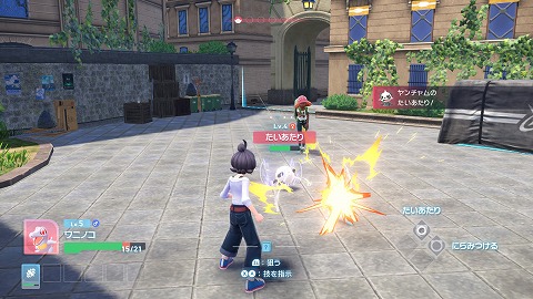 アンリはヤンチャムを出してきます。ZL+Aボタン、ZL+Xボタンで技をだして、ヤンチャムのHPを0にすると、ポケモン勝負に勝利できました。