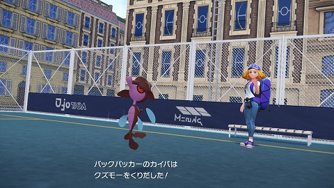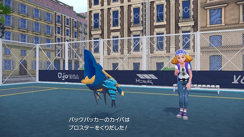 カイバのポケモンは、みずタイプの技で攻撃してきますね。カイバにポケモン勝負で勝利すると、サイドミッション064「雨天決行」クリアです。