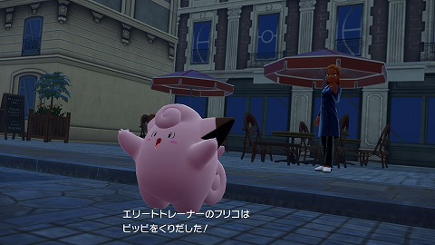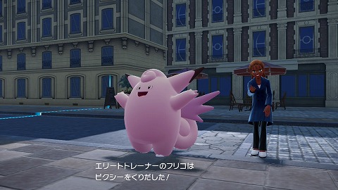もう一度フリコに話しかけて、ポケモン勝負を開始します。フリコは、Lv51ピッピ(フェアリー)、Lv51ピッピ(フェアリー)、Lv52ピクシー(フェアリー)を出してきます。