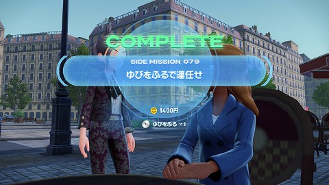 サイドミッション079「ゆびをふるで運任せ」は、ジョーヌ7番地のカフェ・パルトネールにいるフリコに話しかけると始まります。メインミッション26「MSBCからの招待状」を進めると出現しました。