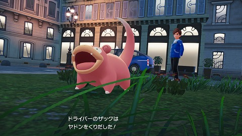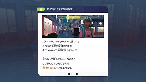 Lスティック押し込みでしゃがんで、見つからないように相手のポケモンに攻撃すると、先制攻撃を与えることができます。先制攻撃はダメージがアップしますね。