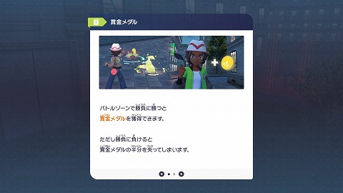 バトルゾーンでのポケモン勝負に勝つと、チケットポイントと賞金メダルが獲得できます。獲得した賞金メダルの枚数に応じて賞金がもらえます。