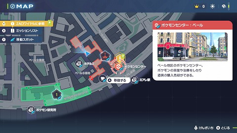 チャレンジチケットを入手したら、ポケモンセンター:ベールへと移動します。マップからポケモンセンター:ベールを選ぶと、ショートカット移動することができました。