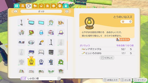 スイクン、エンテイ、ミュウの3匹のポケモンを見つけると、とうめいなスズのレシピが覚えられます。とうめいなスズは、レアポケメタル×5、にじいろのはね×5で作ることができます。