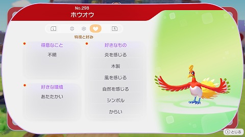 ホウオウが得意なことは、不明になっていました。街に住みつかないので、力を借りることができません。