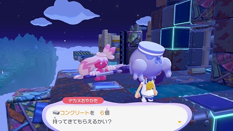 コンクリートを作るには、キラキラうきしまの街でデカヌおやかたに会う必要があります。キラキラうきしまの街の東の島の塔の上で、デカヌおやかたに出会えました。