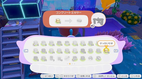 ぽこあポケモンでコンクリートを作る方法を紹介しました。コンクリートミキサーにせっかいせきを入れて、「つぶす」を持っているポケモンにお願いすると、コンクリートができますね。