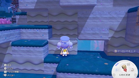 せっかいせきは、白っぽい波模様のあるブロックです。キラキラうきしまの街のデカヌおやかたがいた島、ゴツゴツやまの街の温泉がある場所などで入手できます。