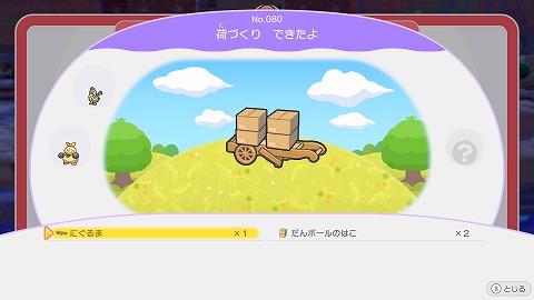 にぐるまの上に、だんボールのはこを2個乗せると、荷づくりできたよが作成できました。