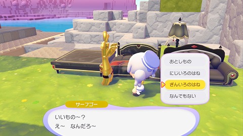 コレクレー、サーフゴーがぎんいろのはねをアイテムと交換してくれます。家具が入手できますね。