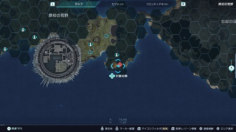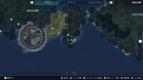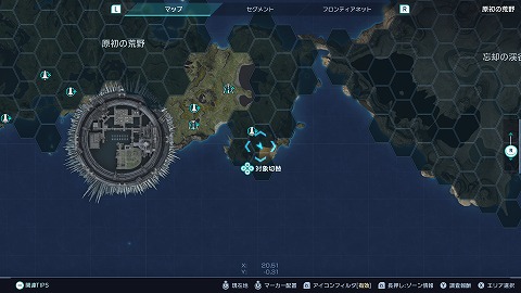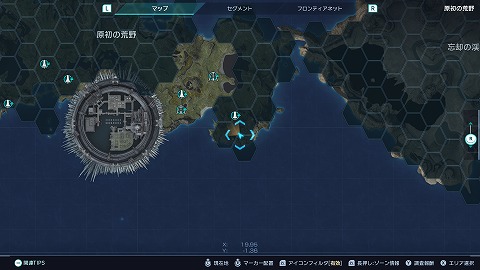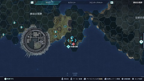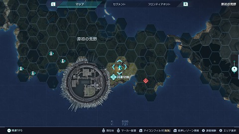 イーストゲートから原初の荒野に移動します。ニューロサンゼルスから東に進んだ山の上(18.89、1.79)でイベントが起こります。