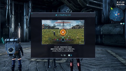 ソウルチャレンジの説明がありました。小さくなる輪を、Bボタンでオレンジ色の場所で止めます。ソウルチャレンジに成功すると、HP回復やTP回復の効果を得られます。