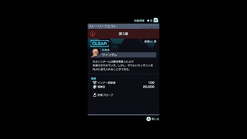 ヴァンダムに報告すると、ストーリークエスト第3章「運命の解放者(ブレイド)」クリアです。