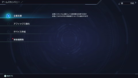 アームズカンパニーのメニューが表示されるので、企業支援を選びます。