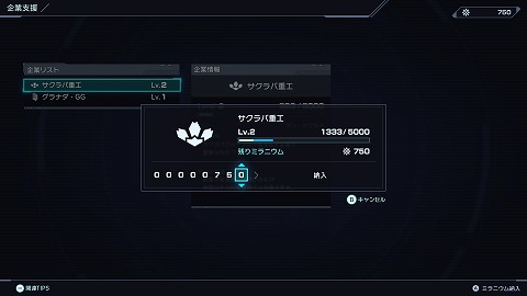 ミラニウムを一定量納入すると、レベルが上がります。企業の製品を装備してバトルをすることでも、レベルが上がりました。