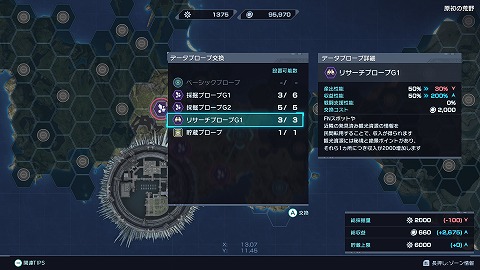 マップをL/Rボタンでフロンティアネットに切り替えて、第112区FNスポットを選びます。データプローブ交換画面になるので、採掘プローブG1を選びました。