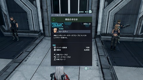 ブレイドエリアにファストトラベルで戻って、カースティに報告します。カースティに報告すると、ノーマルクエスト「開拓の手引き」クリアです。