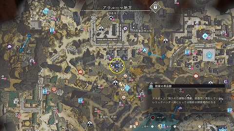 アウルーマ地方のアウルーマ調査拠点の北に、遺構「断崖の商店街」があります。